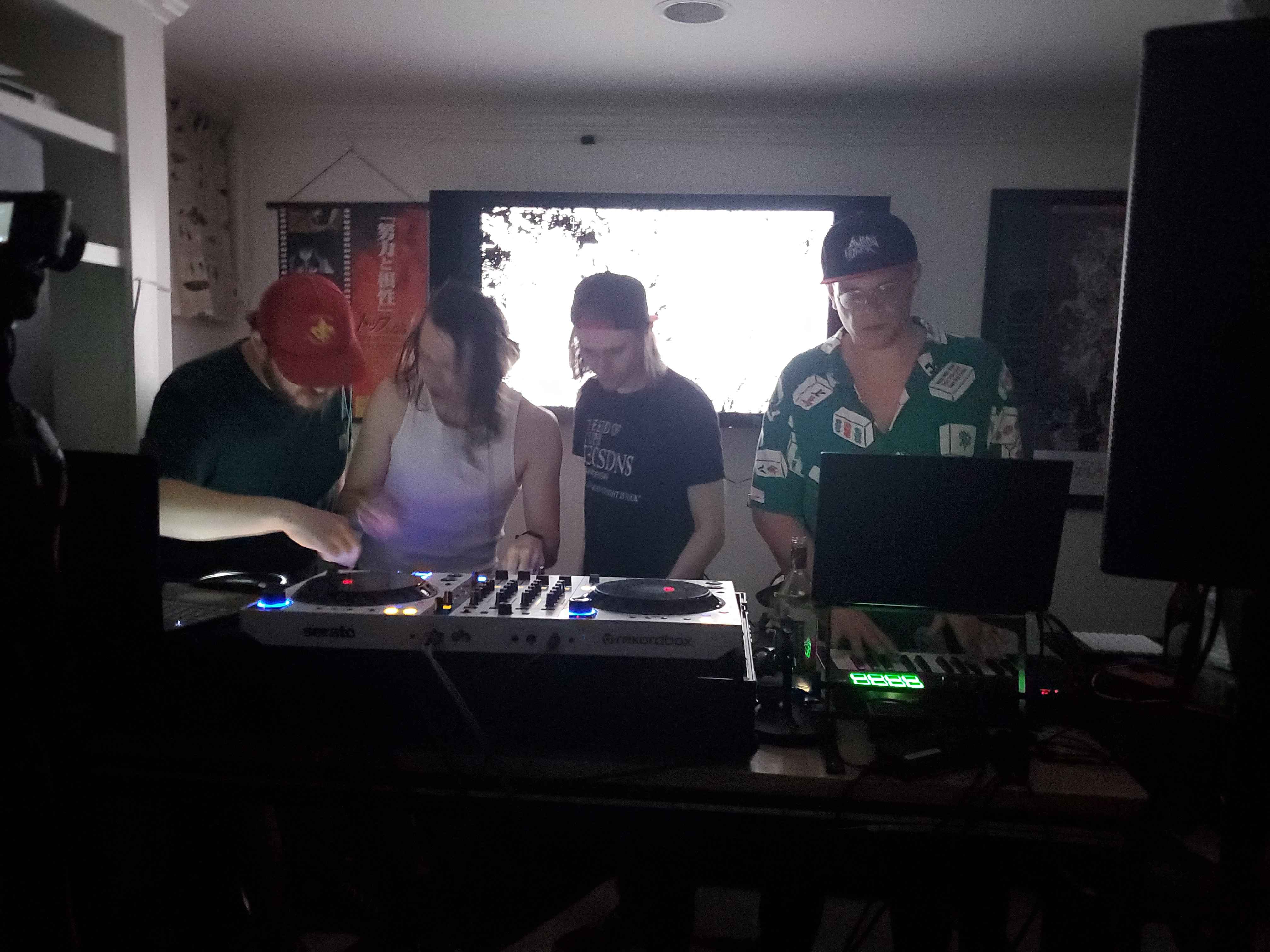 Rare basement IRL back-to-back in an undisclosed location with a wicked audioreactive visual setup.