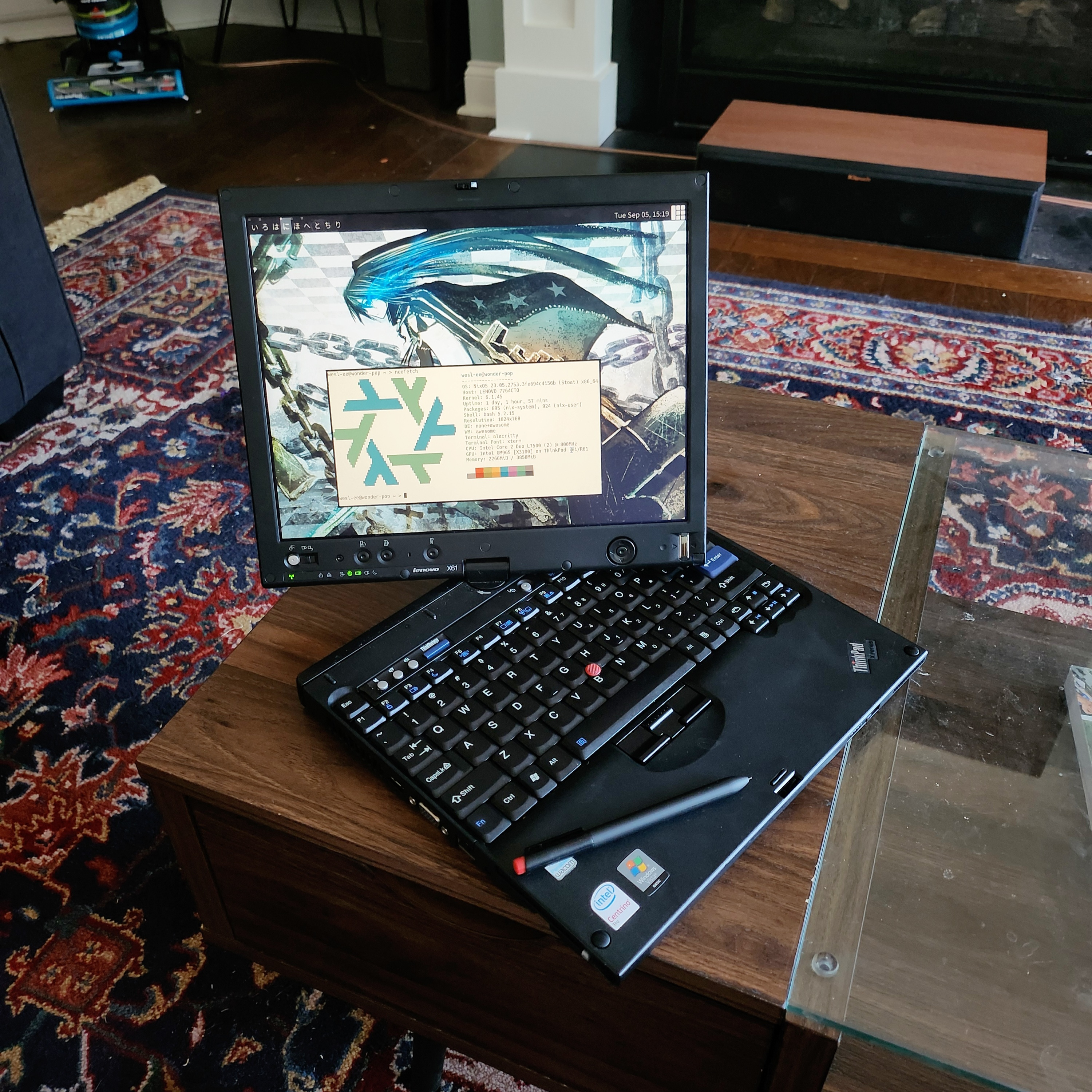 wonder-pop is a Lenovo X61 Tablet and is what I consider my “daily” laptop. I don't take it with me when I travel because it's hefty (about 3.75 pounds). Additionally it has about 50 minutes of battery life meaning that it's more akin to a “mobile desktop” than anything else, though this battery life will likely 2x once I upgrade its battery, and unintentionally its weight.