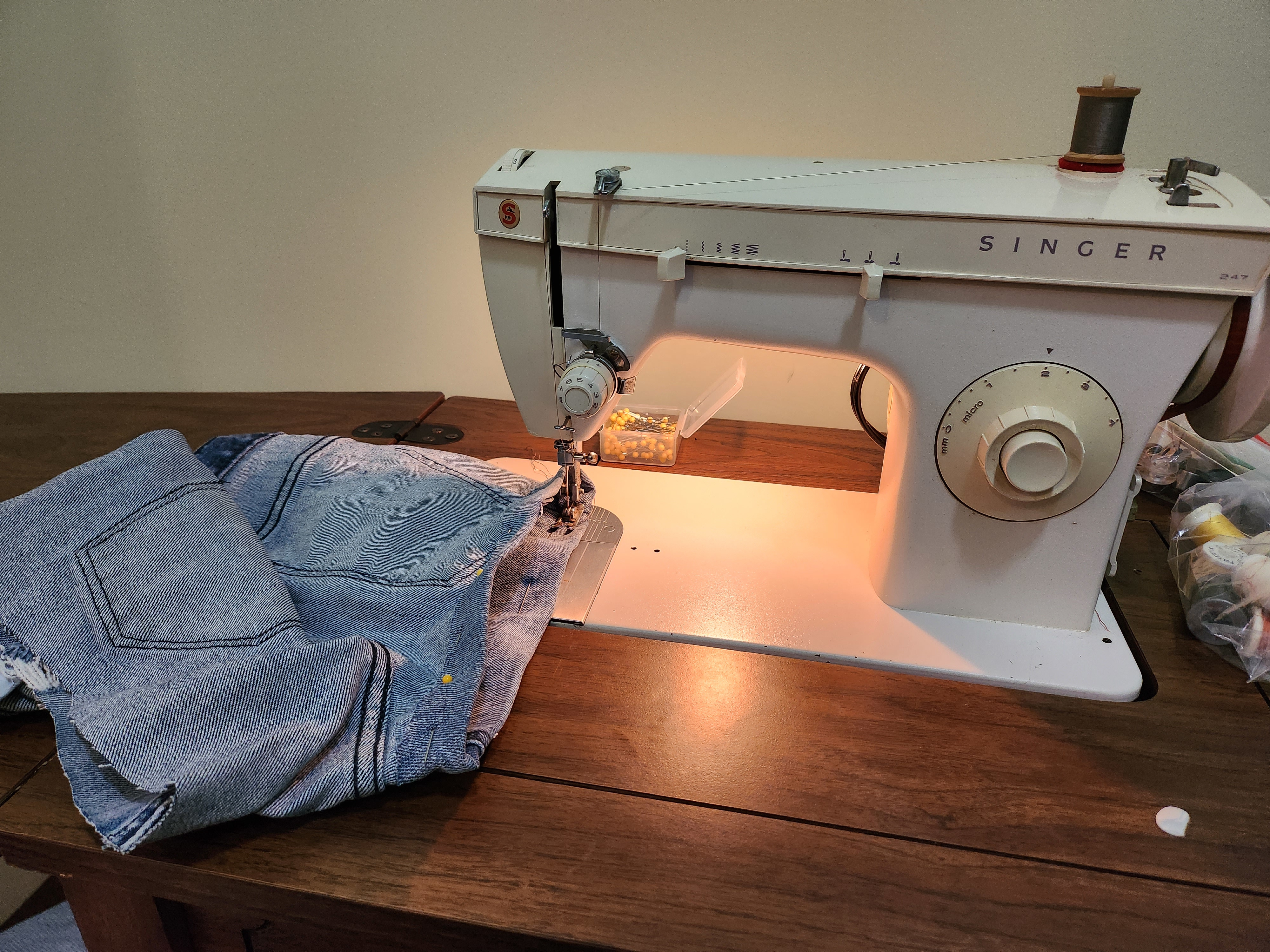 I learned everything I could about sewing by reading. It was intimidating at first but opening the machine up, cleaning it out and lubricating the moving parts taught me some about how it works internally. After running a few test patches through I decided to take on a few concrete projects, the first of these being simply hemming existing clothes.
