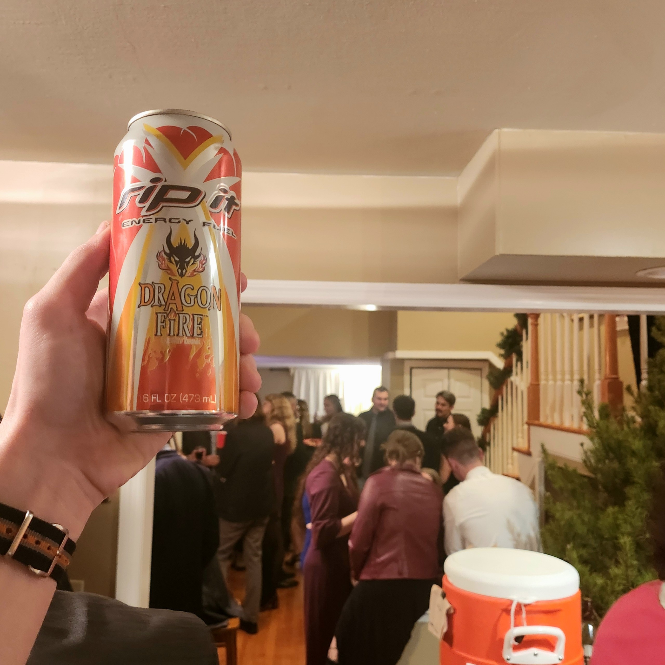 Dragon Fire is a Rip It flavor I've never seen for sale in-person. I acquired this can and 95 others with the magic of the Internet and by the end of the weekend after I got them they were almost all gone; that is, with the help of 50 or 60 friends and friends of friends.