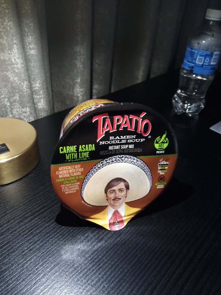 I'm once again in a hotel gift shop well after every other restaurant has closed and I'm a bit hungry. Oh, there's cup noodle with the familiar Mexican guy from Tapatio Bowl Chili Lime Shrimp! Those noodles were fine. These could be better.