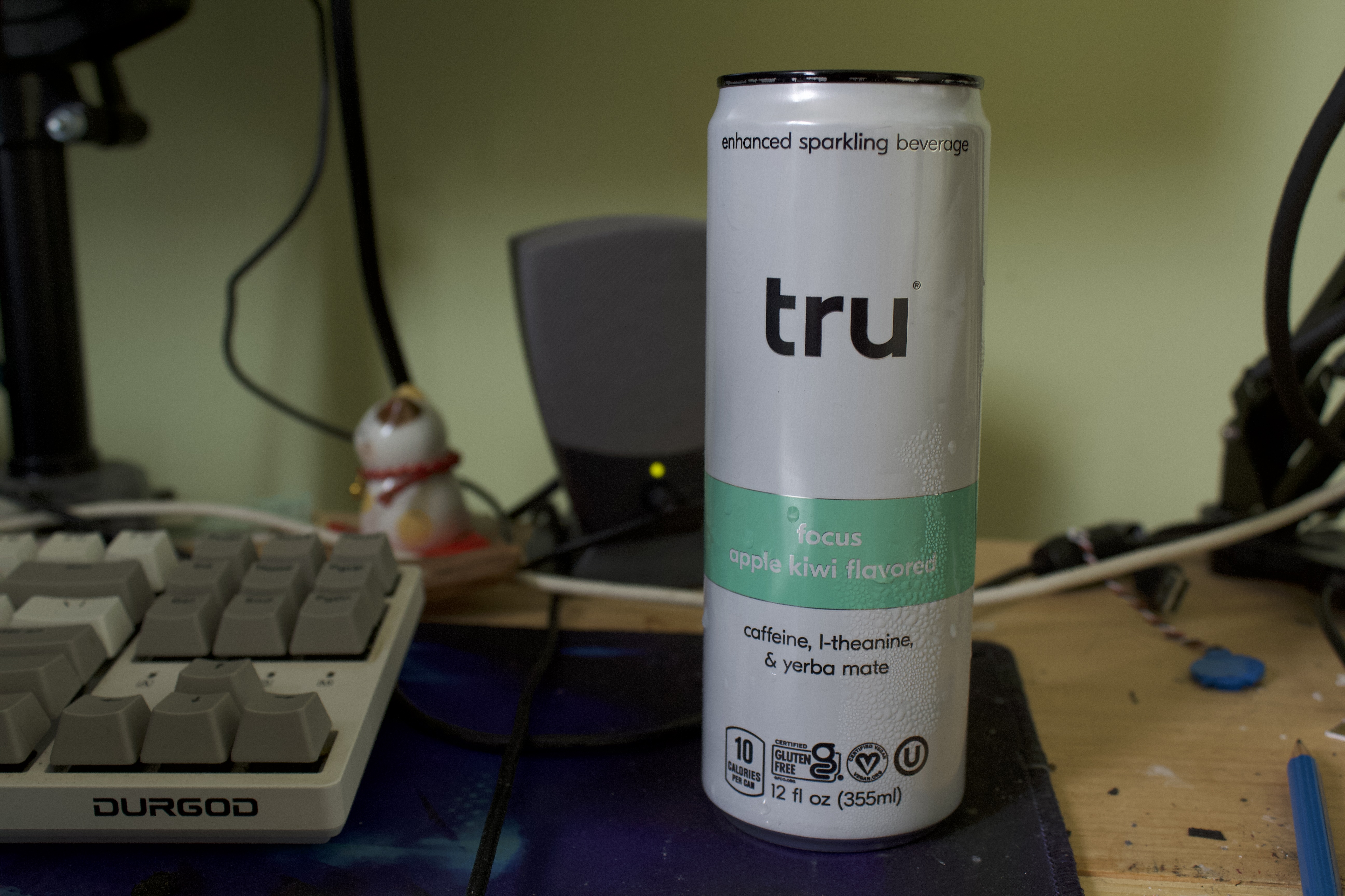 Tru is a weird brand. There are currently 7 types of Tru sparkling drinks: Tru Energy, True Focus (with l-theanine) and Tru Defend (immune system support), Tru Dream (chamomile, gaba, magnesium), Tru Gut, Tru Refresh, Tru Glow (biotin). Founded originally in 2015, Tru expanded to the current sparkling energy drink lineup in 2021 from only offering energy shots before.